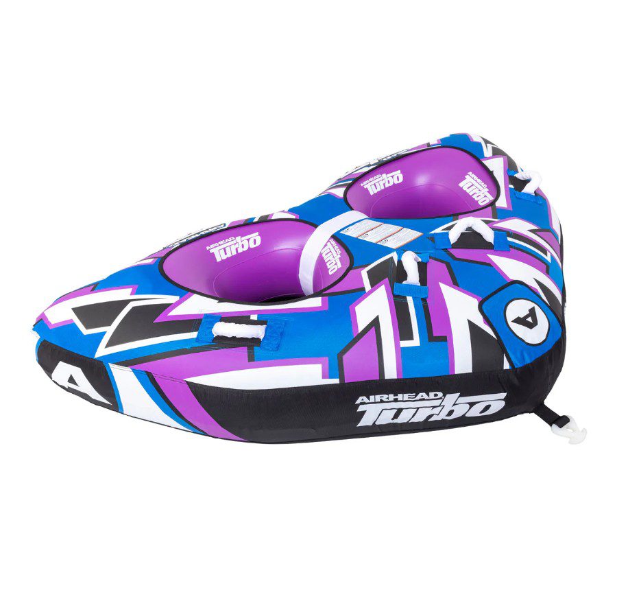 Si buscas un flotador diseñado para la velocidad, no busques más: el Airhead Turbo Blast 2 es la solución. Este flotador remolcable para dos personas presenta una forma aerodinámica que corta la ola mientras los usuarios se relajan y disfrutan del paseo.